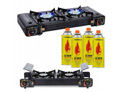 Turistický plynový vařič 2V1 + 4x plynová kartuše + připojení plynové lahve 589 Kč