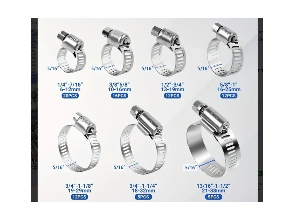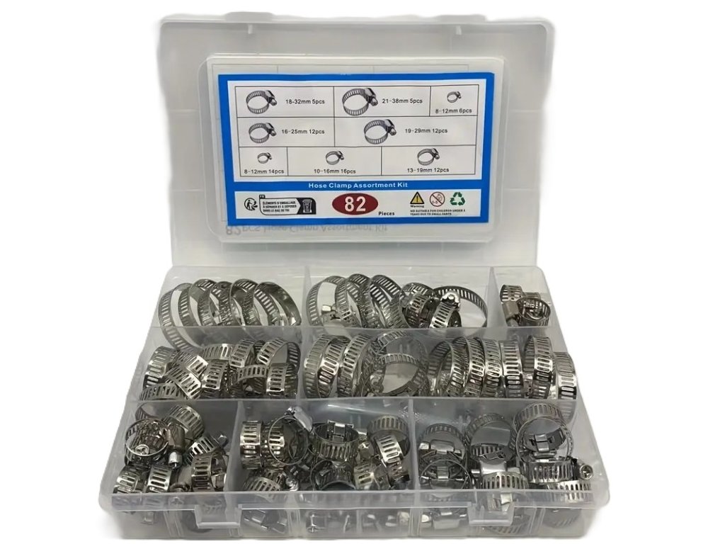 82-dílná sada nerezových šnekových hadicových spon, nastavitelných (6-38 mm)