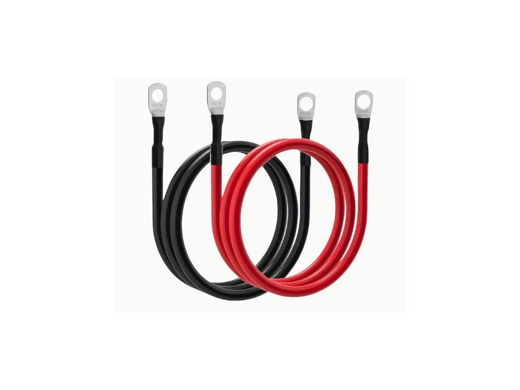Dva kusy bateriových kabelů 6 AWG tloušťka kabelu cca .8mm, vhodné například pro propojení dvou baterií mezi sebou.