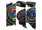 Hliníkový přepínací panel 3x vypínač s modrými LED a LED voltmetr / vstupy - 1x USB + 1x USB-C-20W 12V - 24V