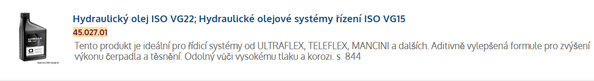 Olej je určen pro hydraulické řízení lodí a je kompatibilní se systémy značek Ultraflex, Teleflex, Mancini a dalšími podobnými systémy.