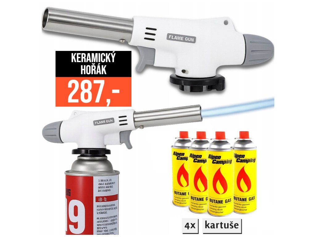 Keramický plynový hořák piezo zapalování + 4x kartuše