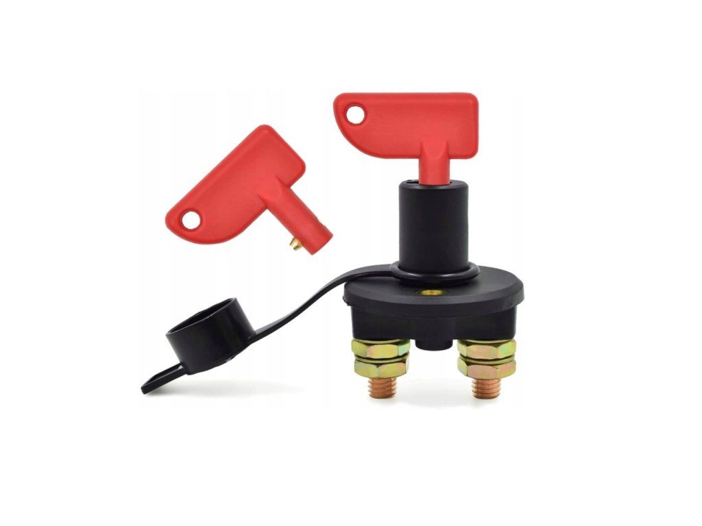 Vysoce kvalitní odpojovač určený pro rychlé odpojení napájení u vozidel - plavidel s napětím 12V / 24V, s vodotěsnou zátkou a dvěma klíči v balení: