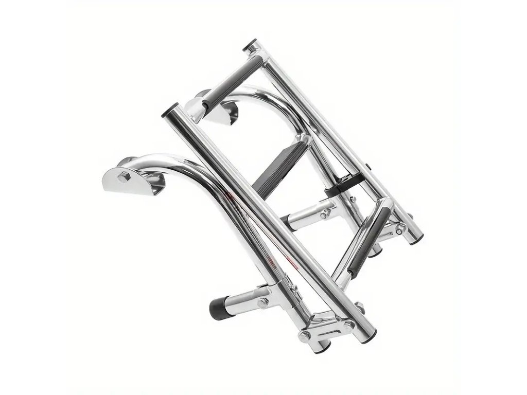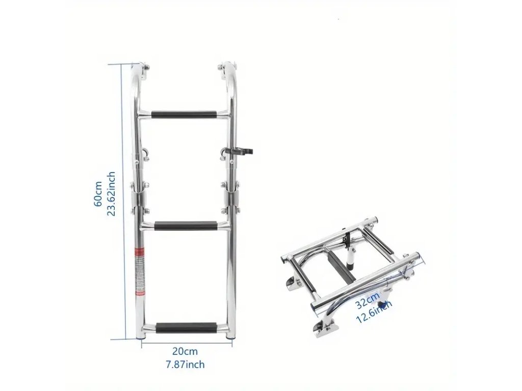 Nerezový skládací žebřík s 2+1 schůdky, šíře 200 mm. Délka 650 mm. Konstrukce z nerezových trubek AISI 316.