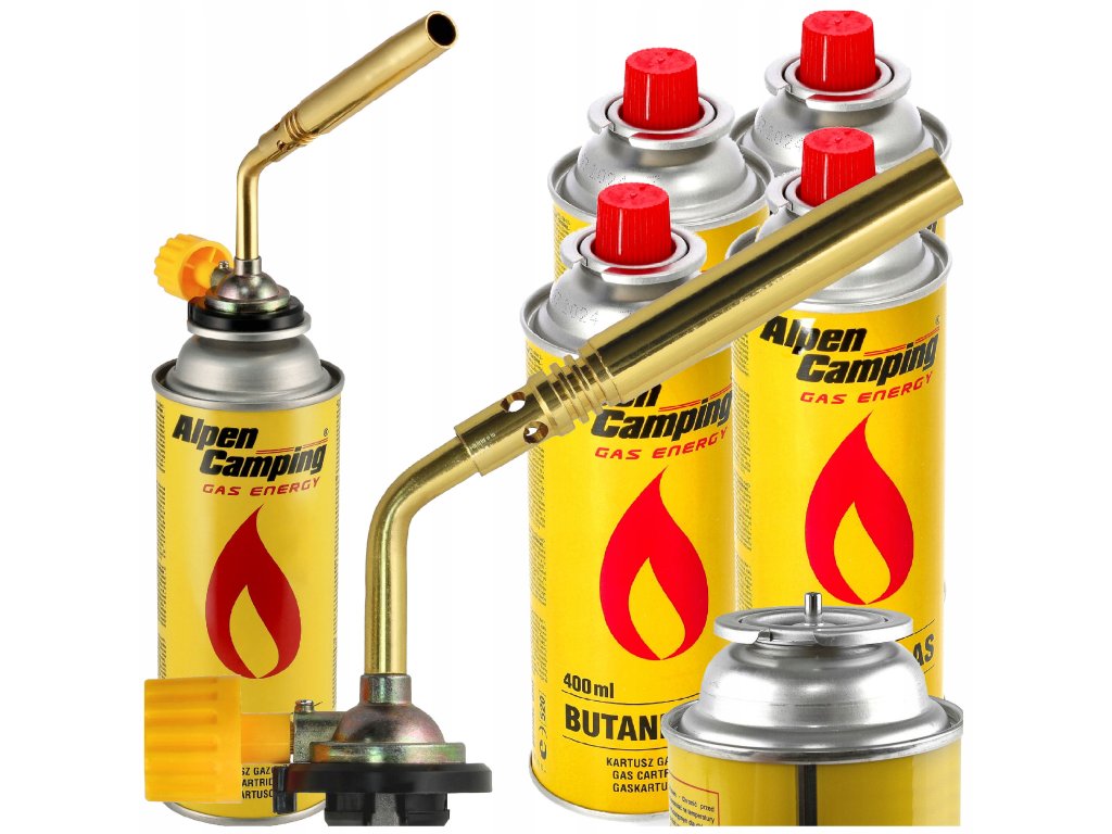 Plynový hořák dlouhý MOSAZ + 4x kartuše