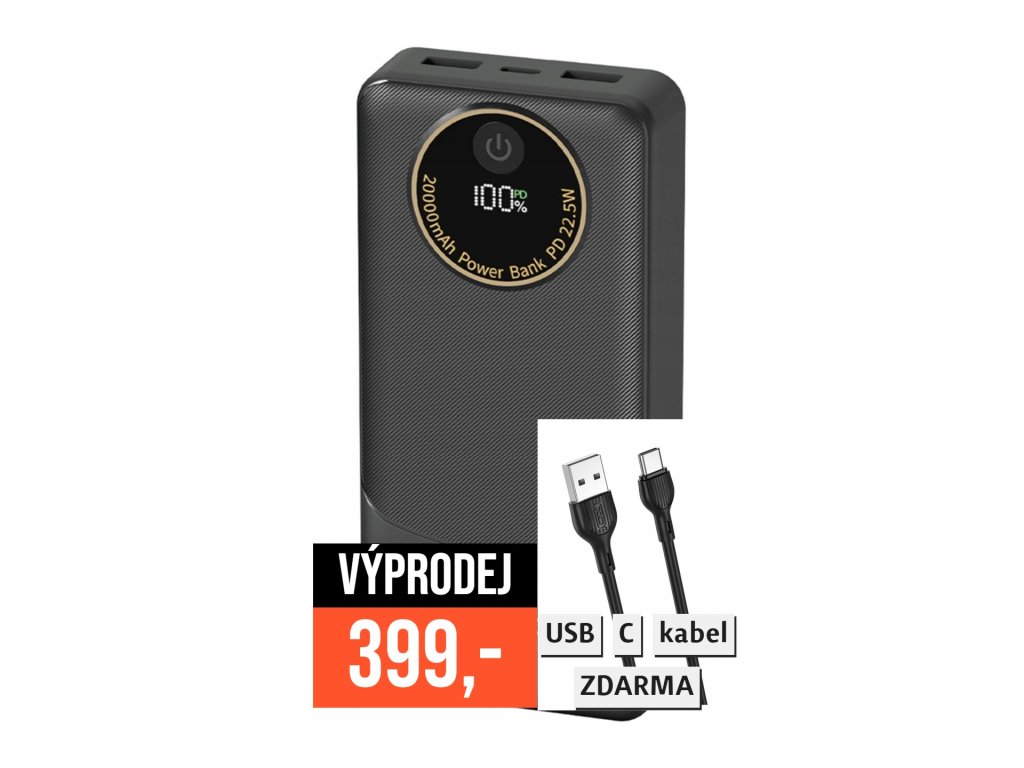 Powerbanka K12Pro 22,5W PD 20000mAh USB-A, USB-C - černá