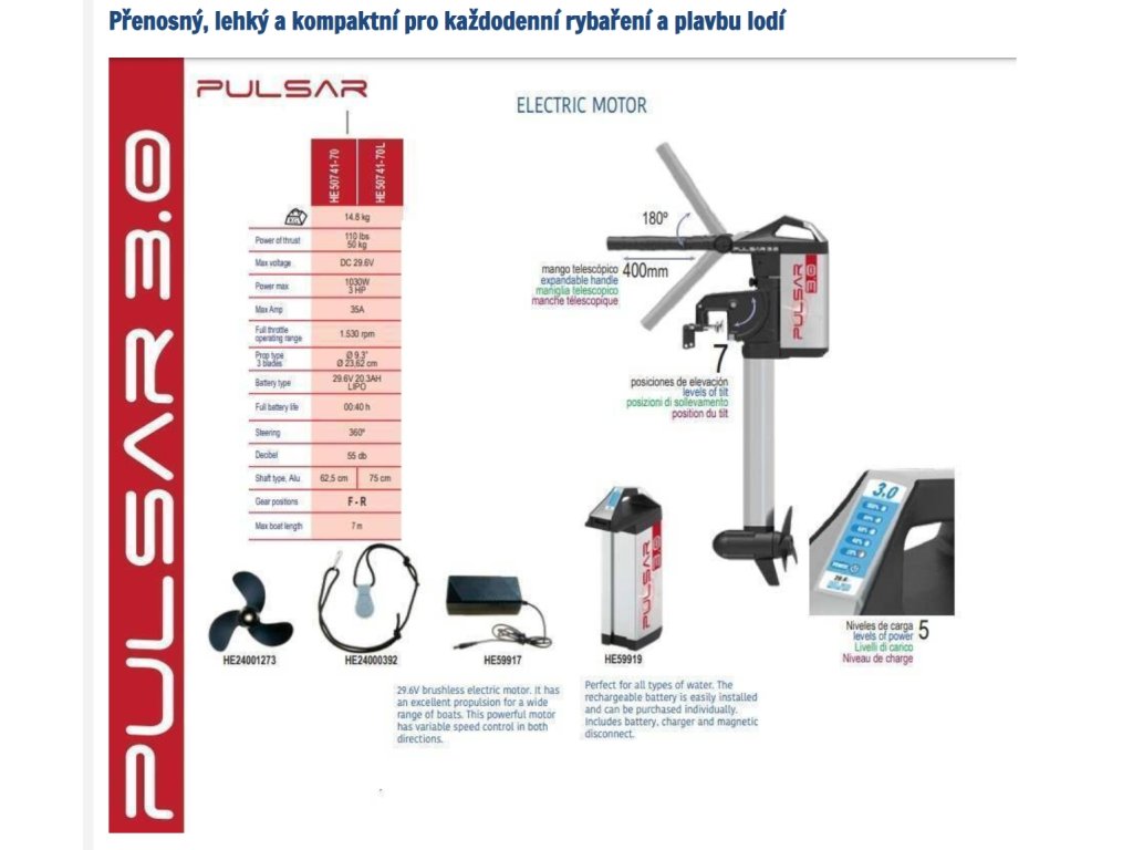 Přívěsný elektromotor Pulsar 3.0 STD krátká noha
